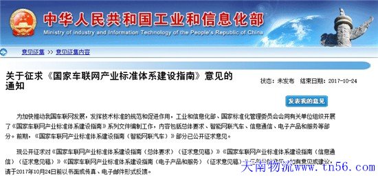 ,工業(yè)和信息化部、國(guó)家標(biāo)準(zhǔn)化管理委員會(huì)聯(lián)合公開(kāi)征求對(duì)《國(guó)家車(chē)聯(lián)網(wǎng)產(chǎn)業(yè)標(biāo)準(zhǔn)體系建設(shè)指南(總體要求)(征求意見(jiàn)稿)》《國(guó)家車(chē)聯(lián)網(wǎng)產(chǎn)業(yè)標(biāo)準(zhǔn)體系建設(shè)指南(信息通信)(征求意見(jiàn)稿)》《國(guó)家車(chē)聯(lián)網(wǎng)產(chǎn)業(yè)標(biāo)準(zhǔn)體系建設(shè)指南(電子產(chǎn)品和服務(wù))(征求意見(jiàn)稿)》三部分的意見(jiàn)。